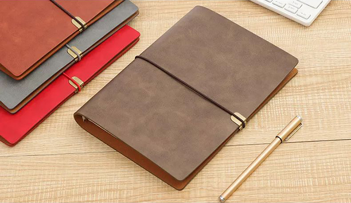 筆記本封皮的材料,有紙面、皮面、布面以及一些特殊材質(zhì)。其中皮革類因?yàn)橛心湍シ浪奶匦?,是較為常用的。